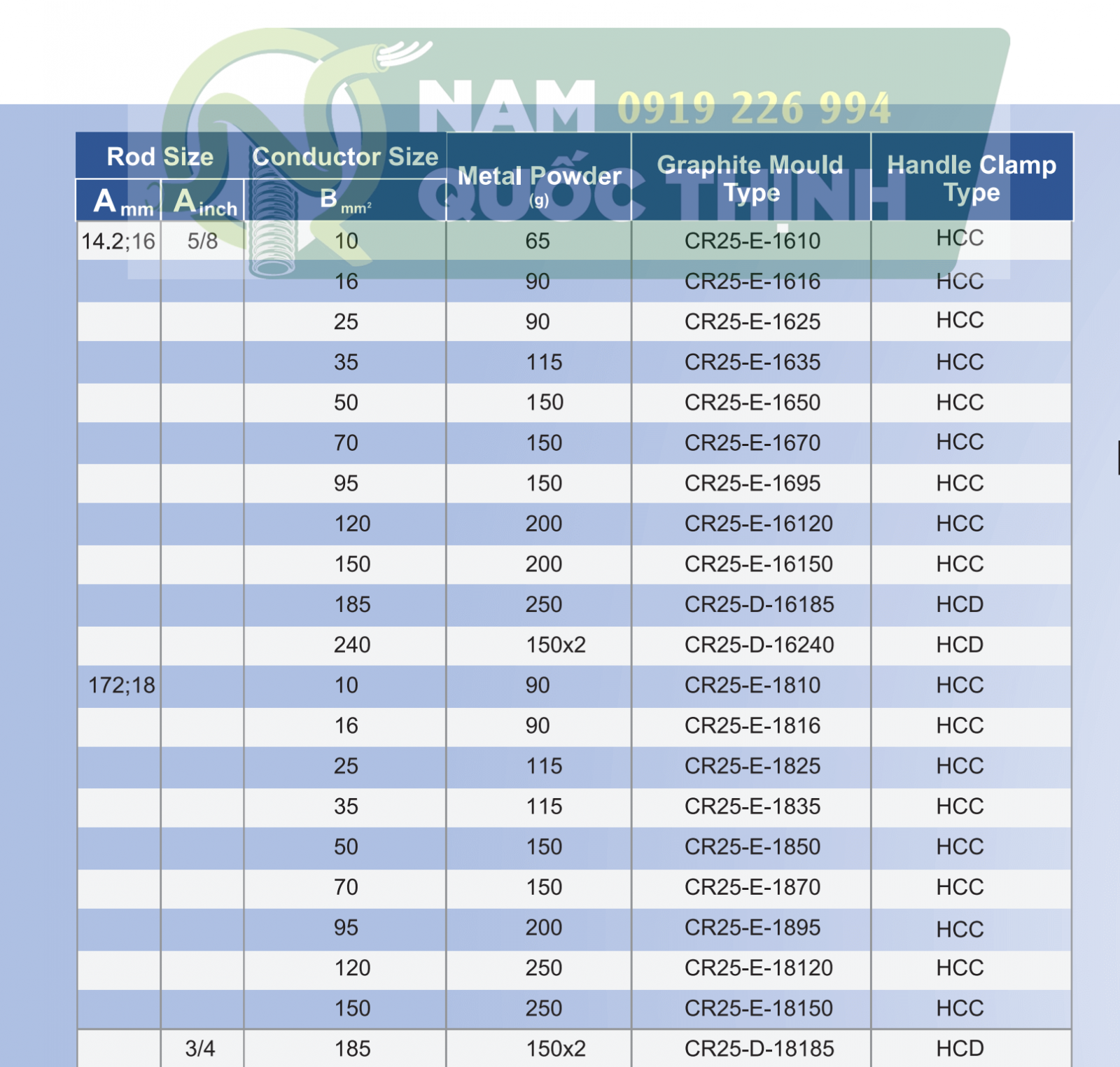 Khuôn Hàn Hoá Nhiệt Cáp 3 Ngã Cáp đồng trần Và Cọc Tiếp Địa mạ đồng từ kích thước cáp 11, 25, 35, 50, 70, 95, 120, 150, 185, 240 mm2 với cọc tiếp địa D16, D20... do Nam Quốc Thịnh cung cấp
