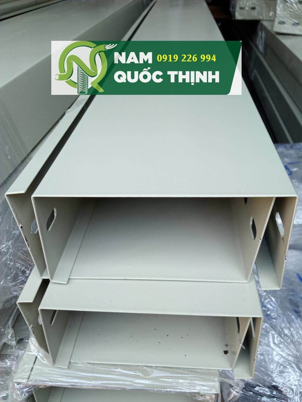 Máng Cáp Sơn Tĩnh Điện 150x75x1.0x2500 Kem Nhăn có nắp đậy được phân phối bởi Nam Quốc Thịnh