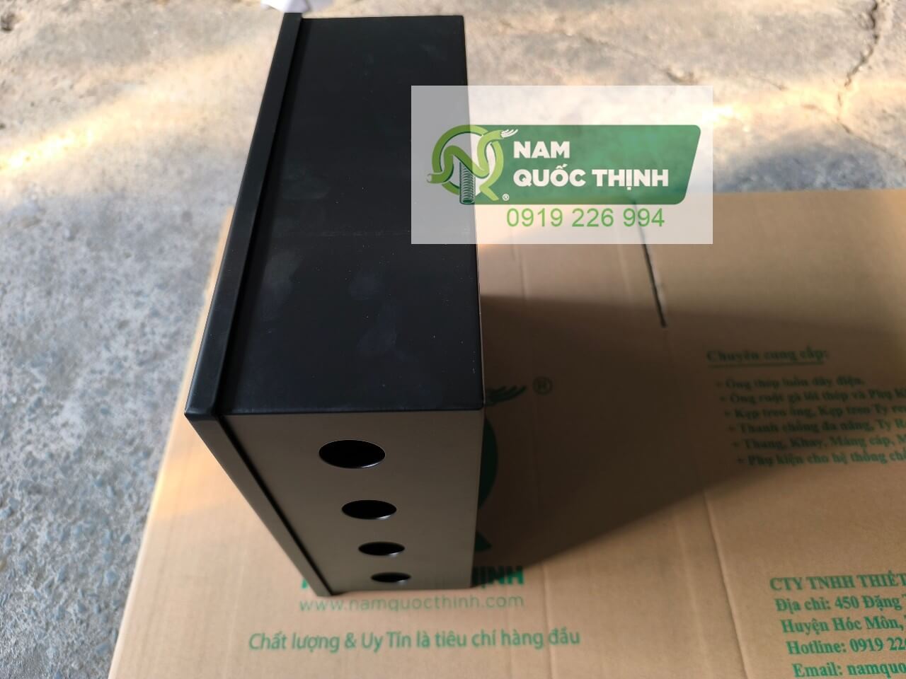 PULLBOX Sơn Tĩnh Điện Màu Đen 250x250x100x1.2 MM Có Đục Lỗ Chờ Ống Thép Mạ Kẽm D25