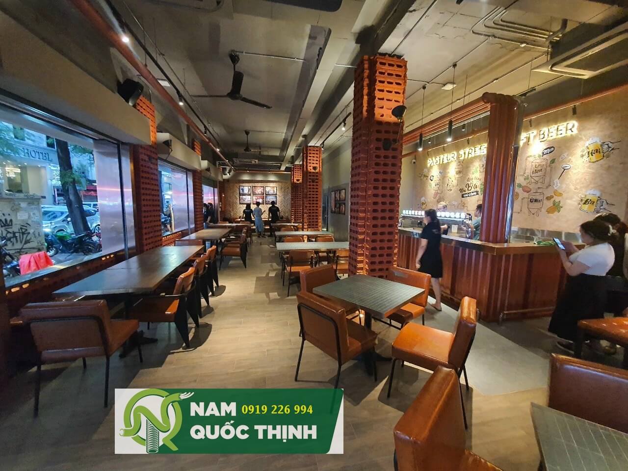 Ống thép luồn dây điện lắp đặt tại Pasteur Street Craft Beer với các phụ kiện kết nối đi kèm được lắp đặt thi công sản phẩm mỹ đạt chất lượng cao đi hệ thống điện chiếu sáng bên trong và bên ngoài, ống kẽm luồn dây điện đi kết nối với quạt trần, hệ thống âm thanh, camera quan sát, wifi tín hiệu cho toàn bộ cửa hàng nhìn rất chuyên nghiệp và đẳng cấp